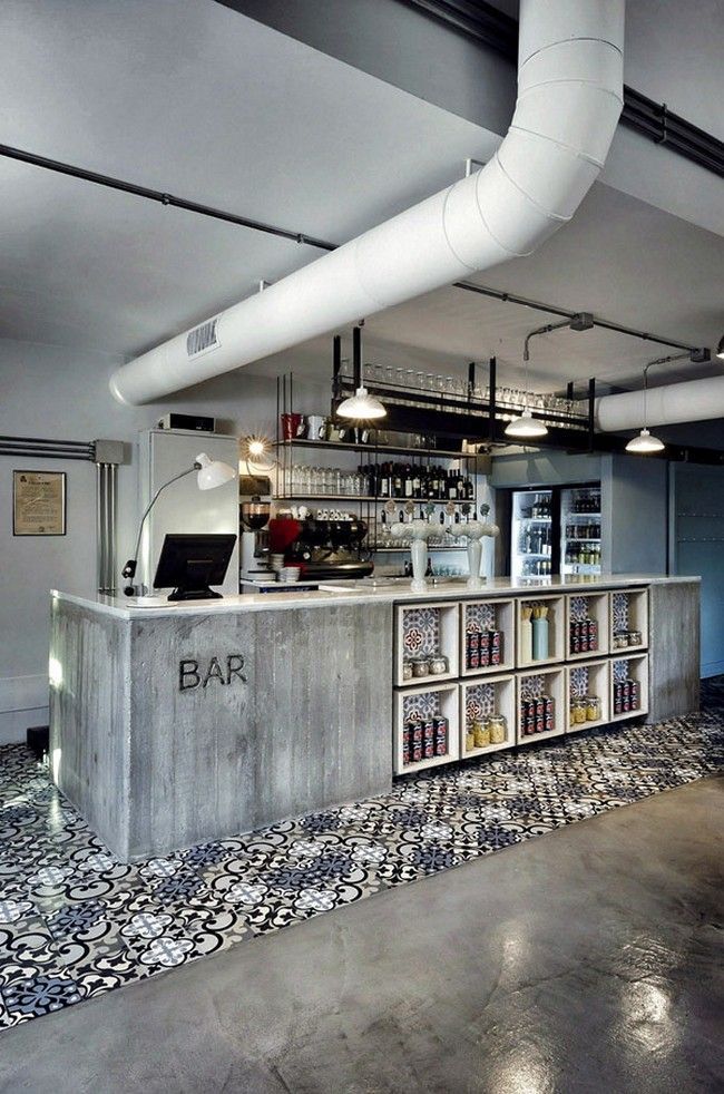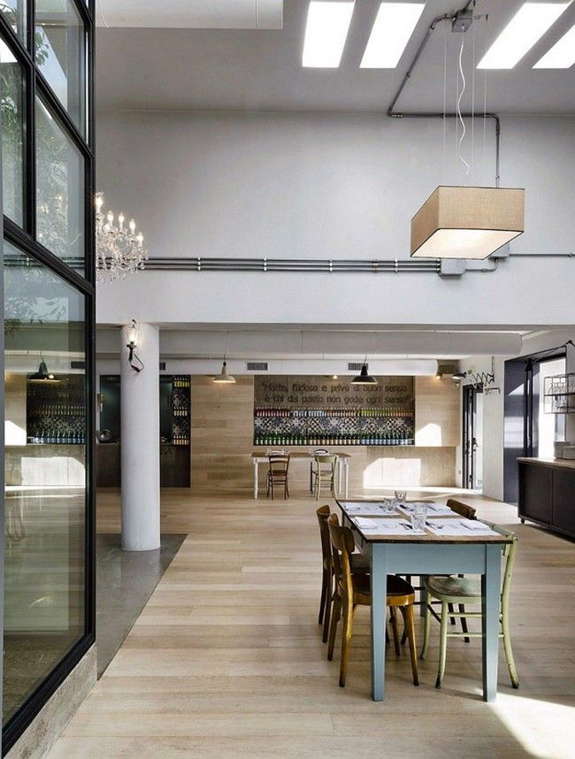 The main focal point in this interior is the huge glass box, surrounding a free standing tree, which brings nature into this restaurant in a dominant way. The tree with its leaves and knobs adds to the roughness of the design. To bring this interior together and pay attention to a cuter, more rural Italian heritage, Noses architects chose to incorporate some colour patterned mosaic and tiles. This breaks with the otherwise modern and crude features.