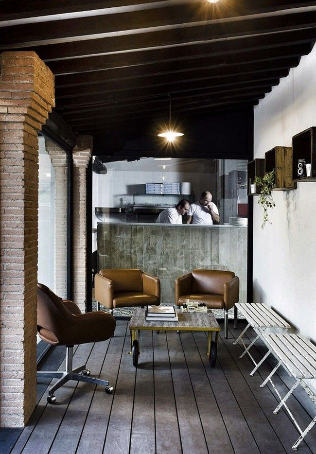 Pizza restaurant KOOK, located in Rome, offers traditional food served in a unique and modern environment. Experimentation with materials such as glass, iron and concrete makes this restaurant surprising and around every corner something new is hiding. It is designed by Noses Architects who made the restaurant rustic with its raw materials and Spartan layout, while still keeping a sophisticated and luxurious atmosphere full of design quality. Wood and leather becomes the warm elements in the design, inviting us to sit down and get comfortable in the large Chesterfield sofas.