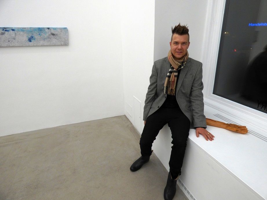 However in this new exhibition, Carl says that he wants to reflect about what materials actually are and how they are used, and he wants us to look closer at the materials around us. For this exhibition he remodelled a wall of the gallery, exposing its unfinished state with fillers along the borders. His idea was that by creating this wall he drew attention also to the material that the gallery itself is made of, and a raw and crude atmosphere was accomplished.