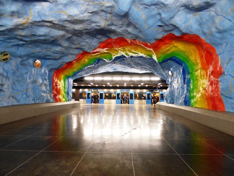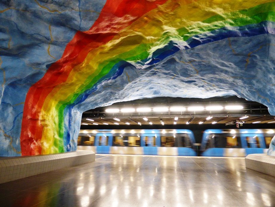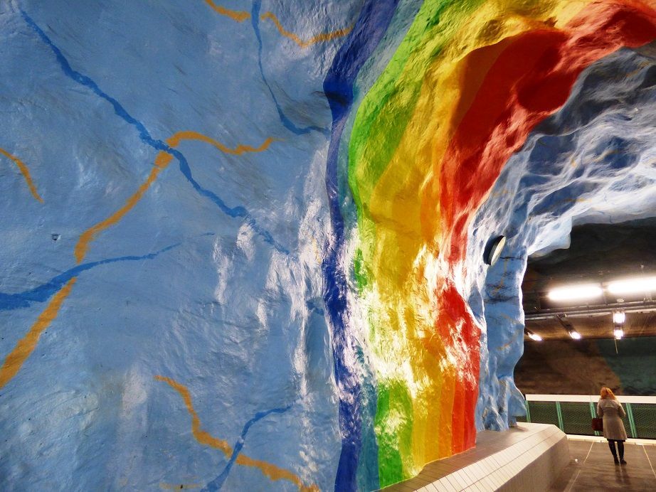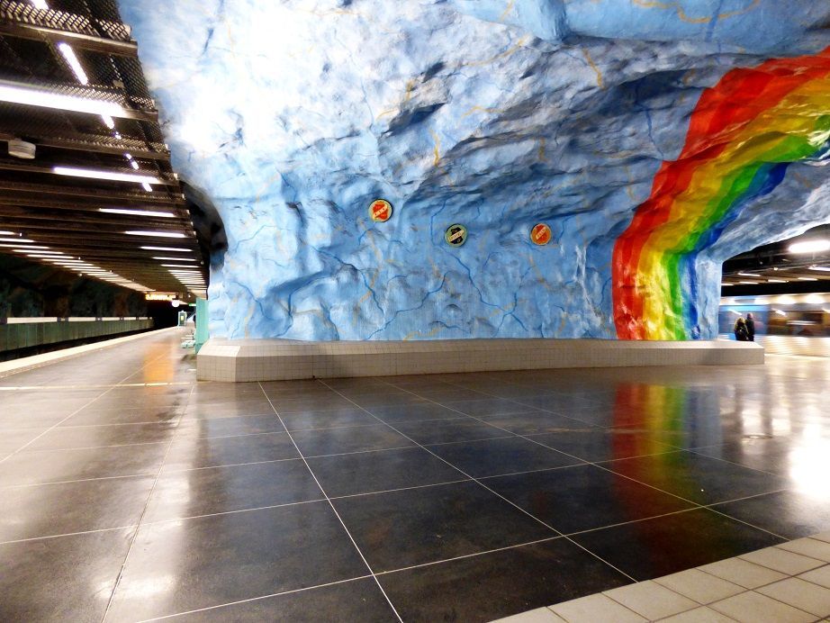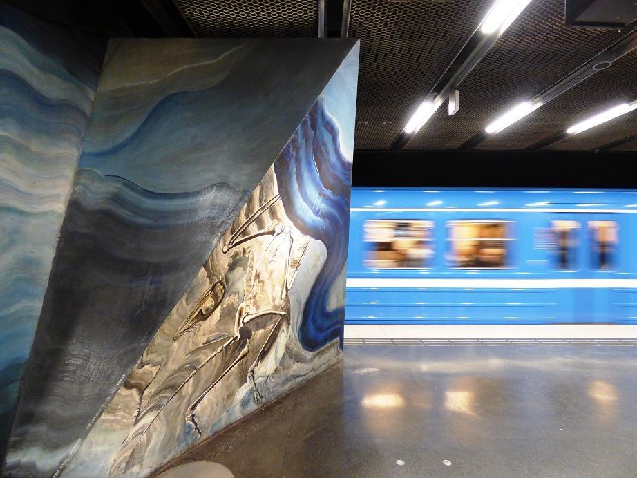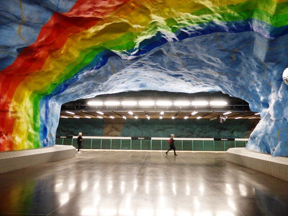 The subway stations of Stockholm hold an interesting art collection really worth taking an extra look at. Most of the stations containing art have been decorated during the sixties and seventies and the art reflects that era, and the boldness really suits the underground. A trip to the ornamented stations offers an unexpected art experience and the moment between trains when the big space is empty is pretty spectacular.