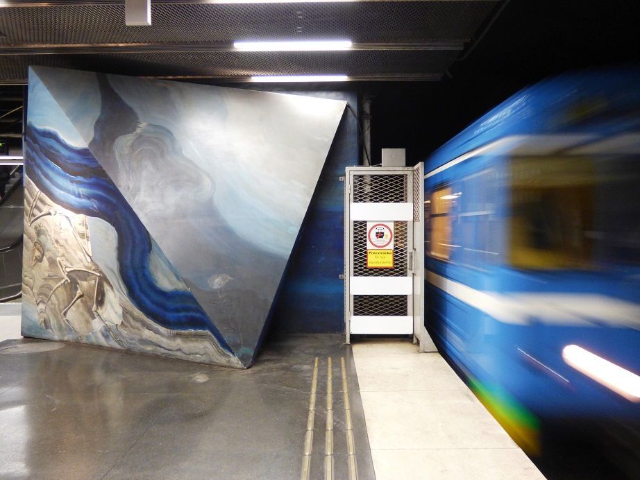 Stadion station is decorated by Swedish painter and sculptor Åke Pallarp (1933-2013) and Estonian born artist and Professor Enno Hallek (born 1931).