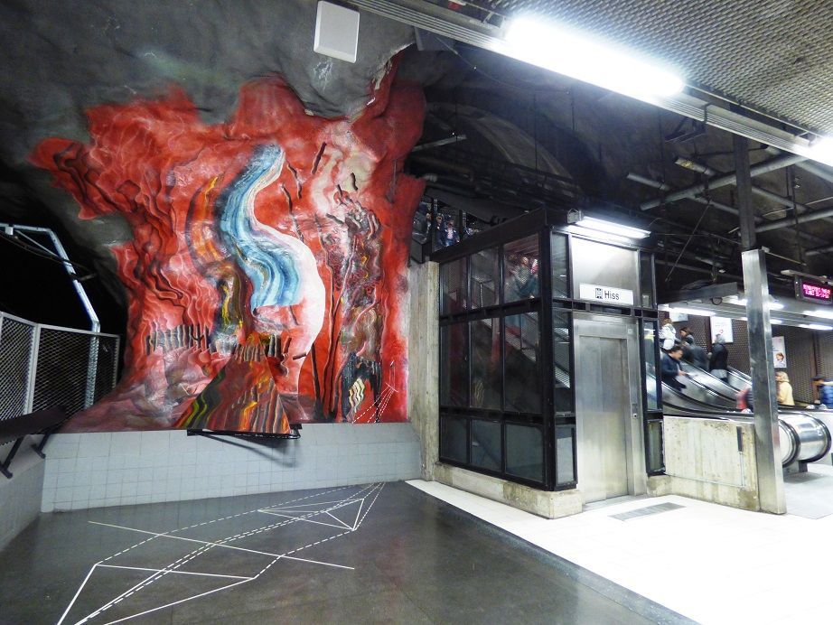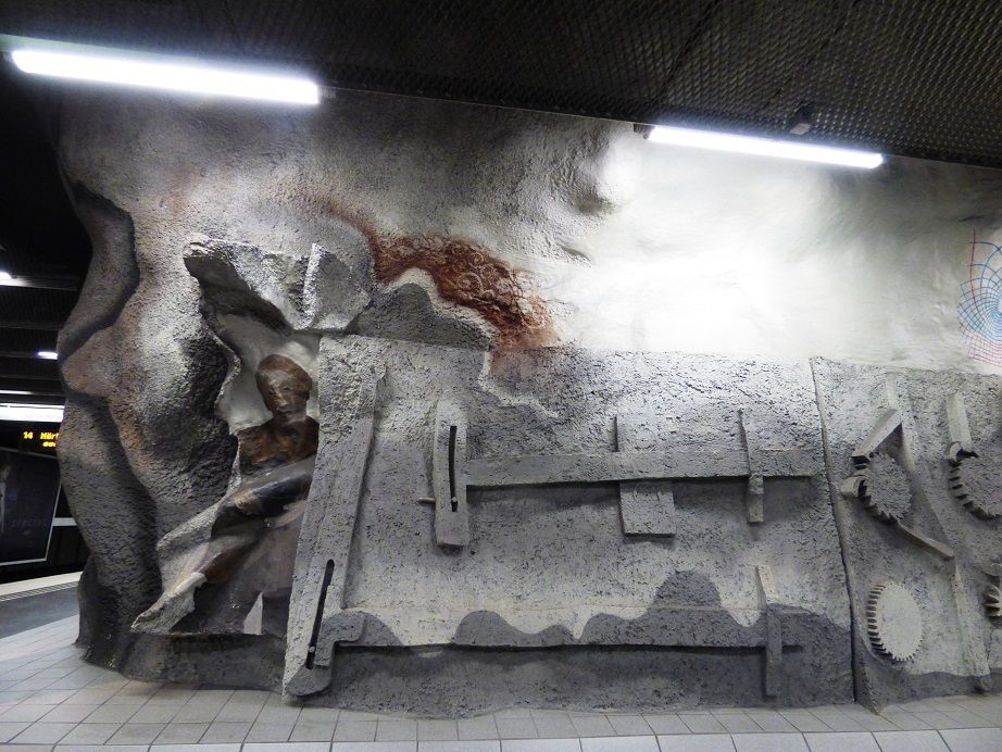 Tekniska Högskolan station was decorated by Swedish scenographer and artist Lennart Mörk (1932-2007).